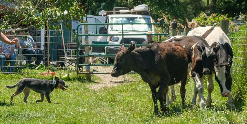 I did some work with Ukulele a bit at this clinic. Pretty happy with boosting her confidence and taking commands. She has a really great ability to turn and flank, and is very respectful to moving stock. We are hoping to do a bit more pen work with her