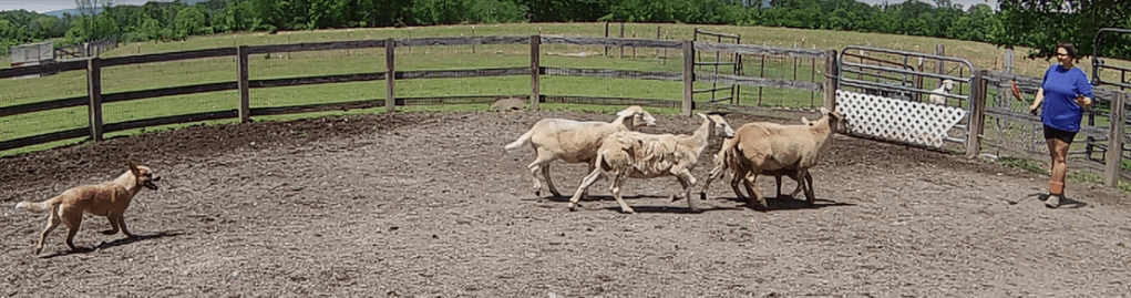 One of my biggest issues with her is the out, getting her to give up control of the sheep to go to the opposite end of the pen. This exercise, as well as the stop, generally involved me blocking her left and right, keeping her away from sheep until she stopped.
