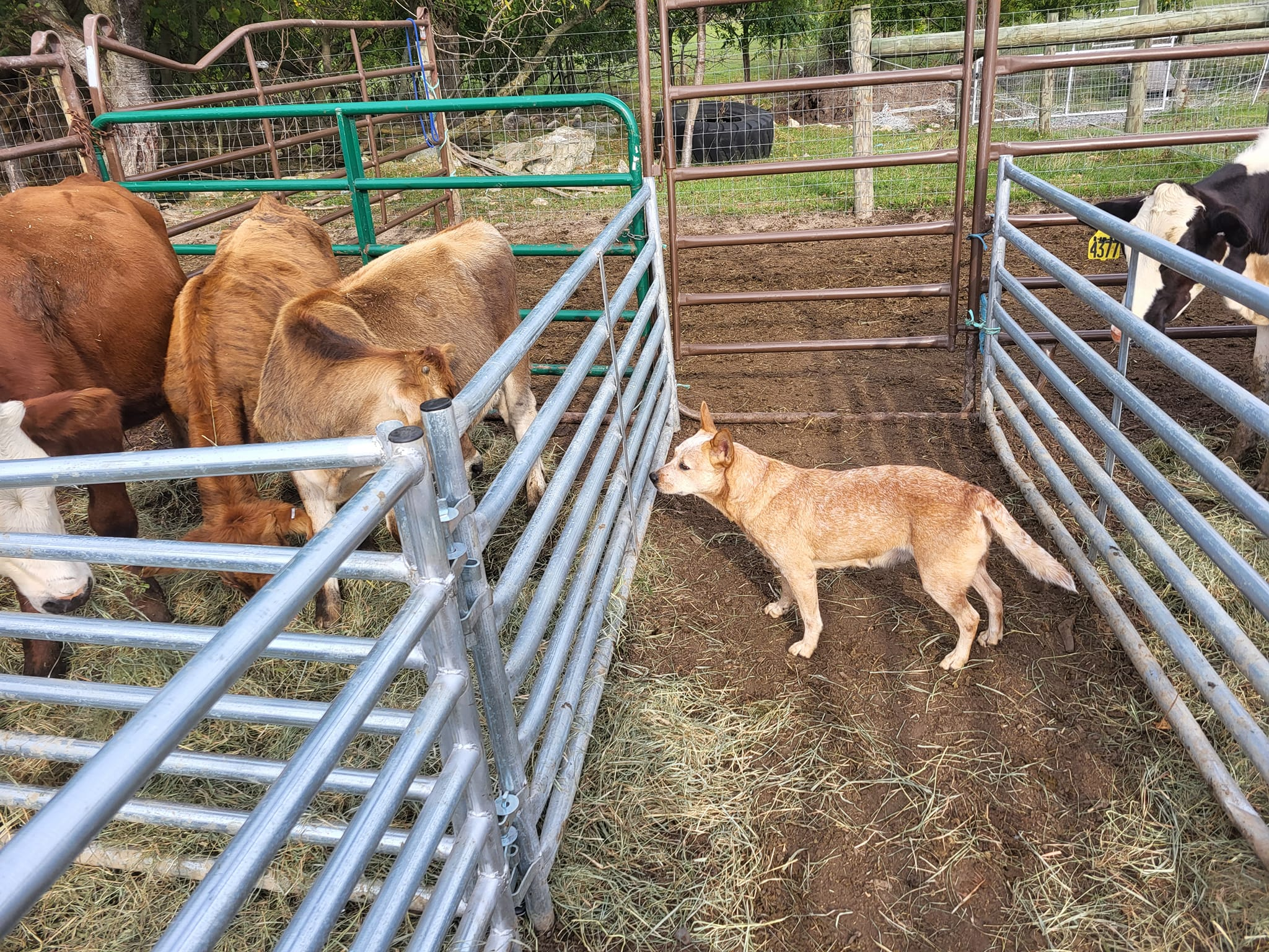 Fiddle was put in charge of getting the cows out of the bottom of the barn at the beginning of the day and put them up into the sorting pen, and then help push, sort, and split our groups into the proper smaller pens.