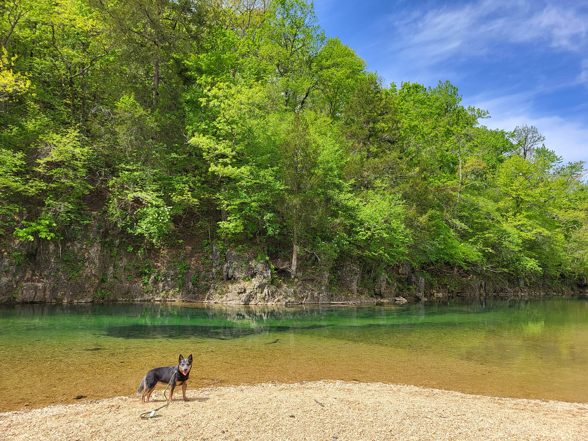 After the Arkhoma Cluster ended, we had some time to fill before my next herding clinic in the St. Louis area. So, we went to a few state parks in Missouri for Hiking! We went to Roaring River State Park, and hiked the ridge trail and the river trail. We then made a pit stop at the Wilder Farm in Mansfield, MO, and Big Springs National Recreation area, followed by a trip to Echo Bluff state park, where we hiked the river path, and found the Bluff for swimming!