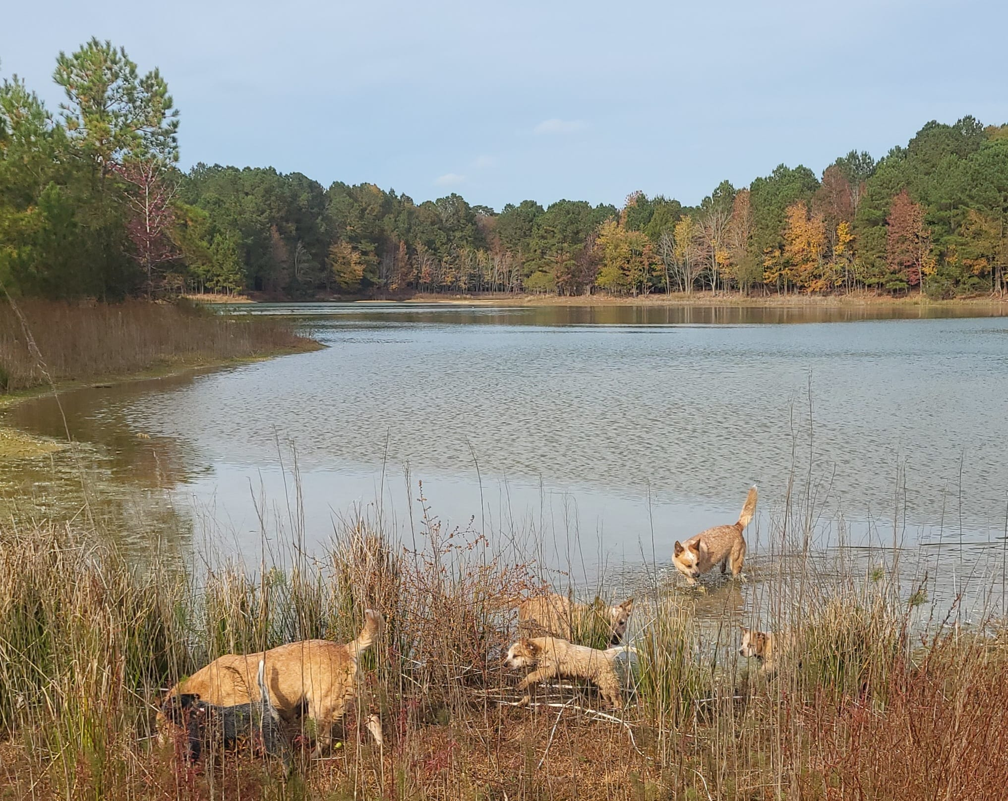 We decided to get the entire cattle dog gang out to swim at Terri’s house, and the water level was low enough that we could all actually wade out to the island, including the dogs that aren’t a huge fan of deep water swimming (Fiddle and Rory).