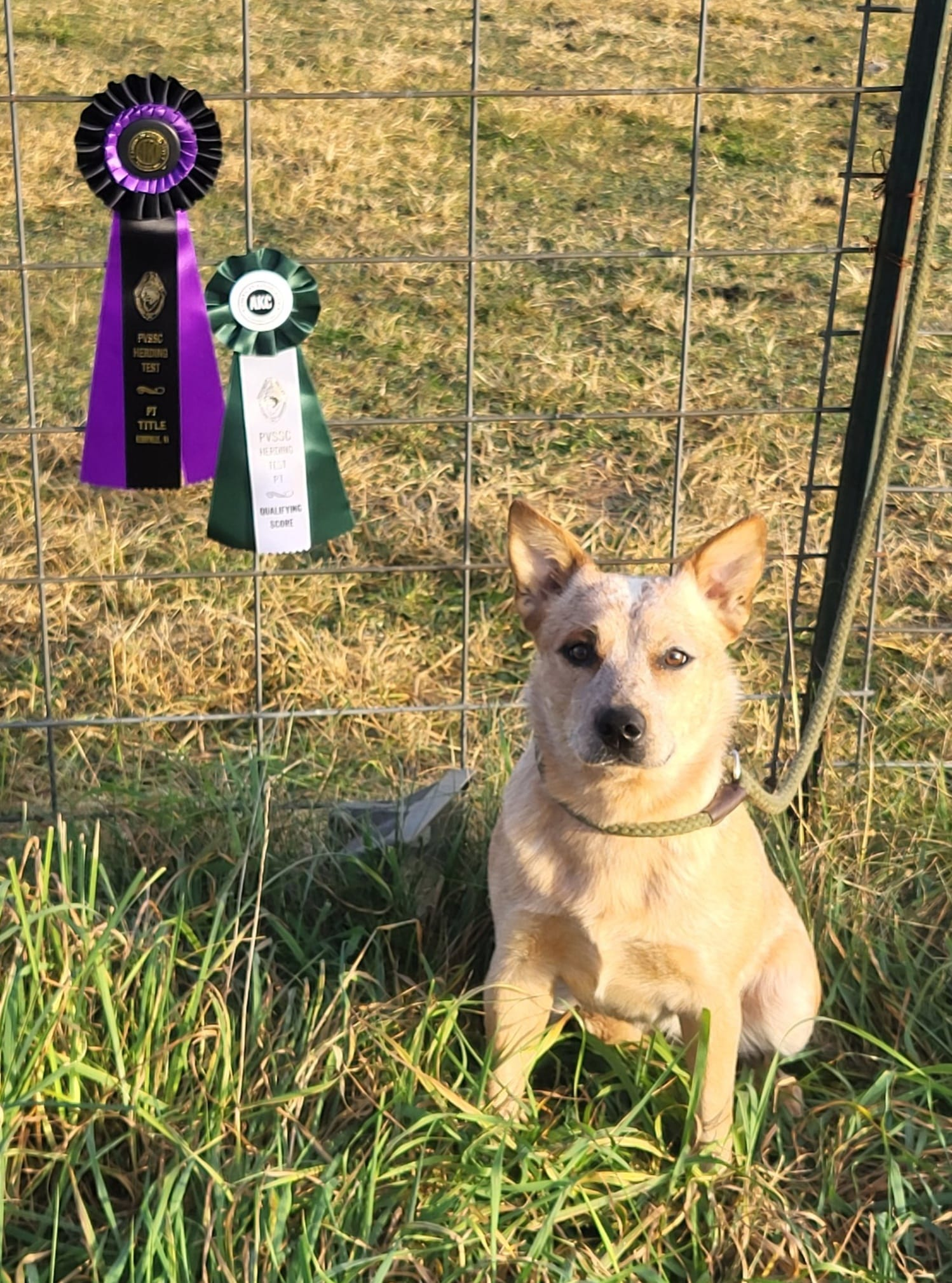 She really gave me 110% in almost every run. And she did what she needed to do! Qualifying twice on intermediate sheep, twice on intermediate ducks, and once in started B ducks (with a score of 82)! We officially finished our titles! She is now: