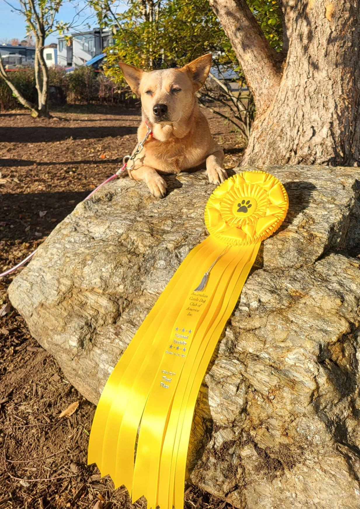 She wound up qualifying in Advanced Rally (and her stupid handler didn’t bring her feet together and cost her 10 points, so we ended up with an 89, not a 99), and finished her started sheep title with a 3rd place finish, and wound up in 5th place in versatility conformation. This landed her a 3rd place finish overall! There were only 4 total qualifiers (Nada, Mazikeen, Fiddle, and Rory), and I owned 3 of them!