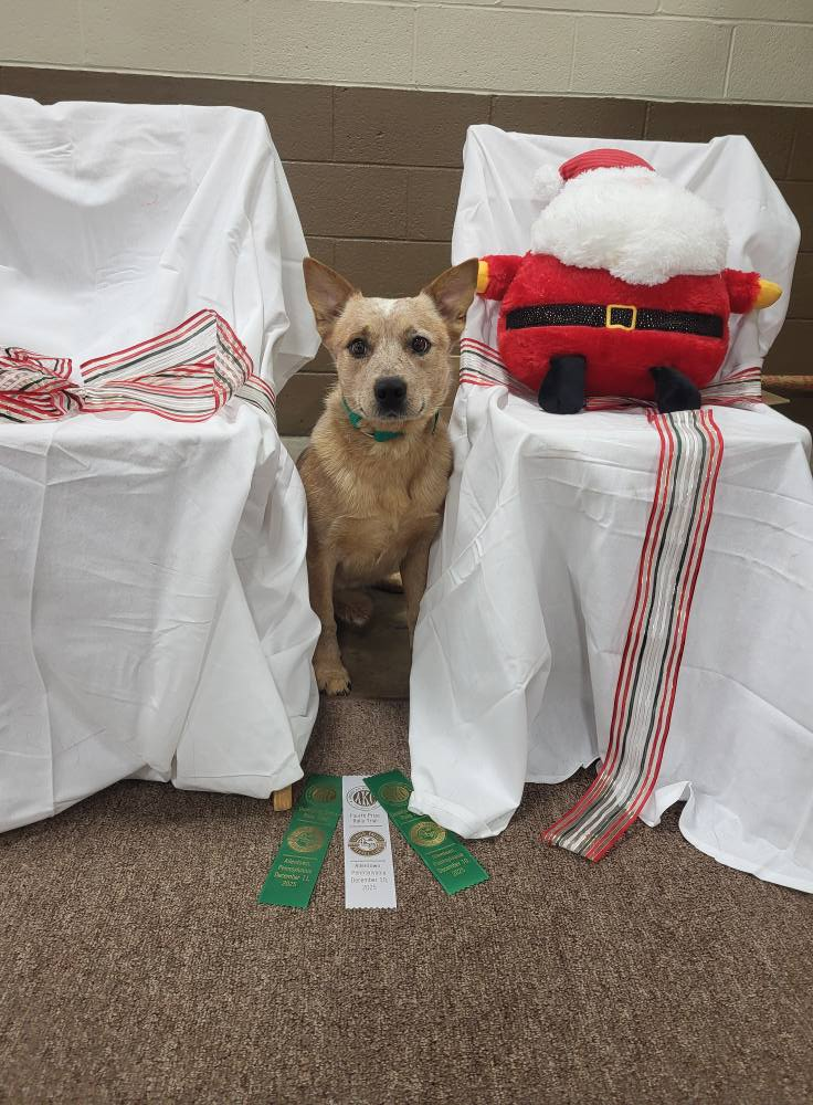 However, Miss Chunky (Kuper x Fiddle) turned it out, finishing her Companion Dog title Wednesday, with a Bonus Beginner Novice leg from today and a second place finish, and then finishing her Rally Excellent title with two handler impaired qualifying runs! (Apparently, when I get tired, I don’t know my lefts from my right?)