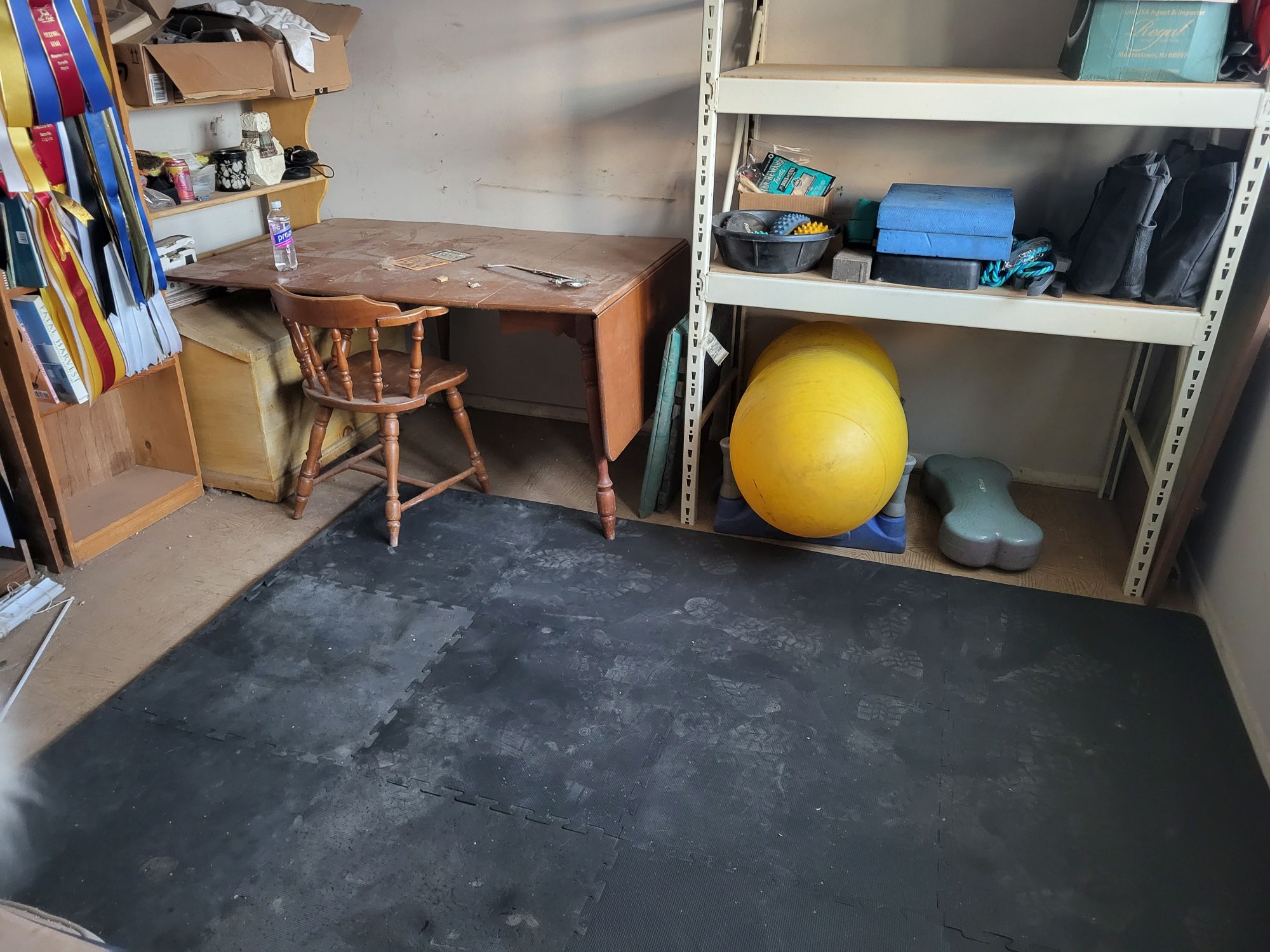 We spent the rare weekend at home playing in the snow (until it turned to ice), and cleaning and clearing out a new canine conditioning room! I have been using my bedroom prior to this, but I am glad to have a nice, rubberized surface to work on, and racks to store all of my equipment,
